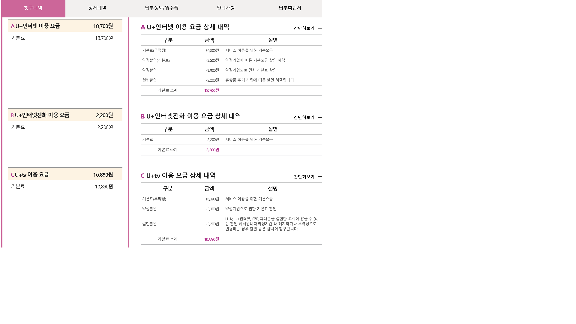 월요금 +1,100원이 더해지지만 온가족할인 덕분에 50% 할인(550원)이 적용되기 때문이지요^^