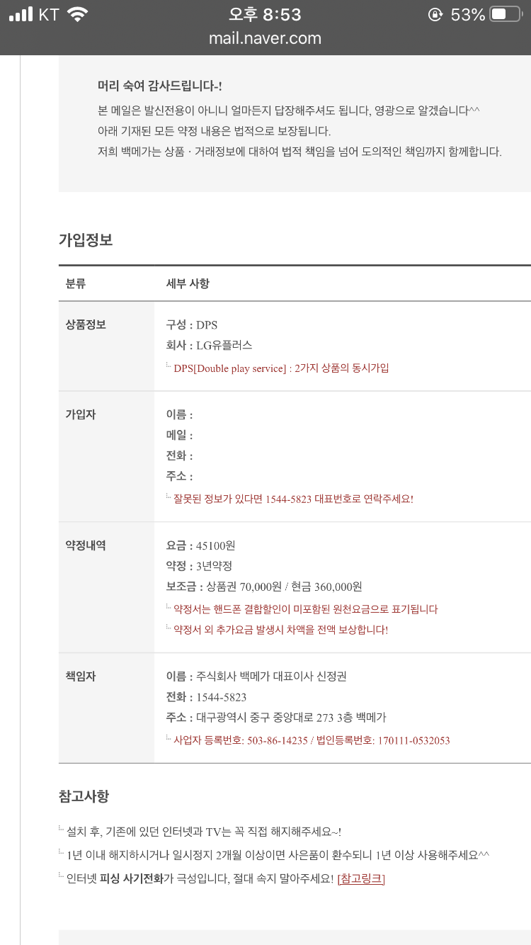 비록 백메가에서 가입을 진행해드리지 못하게 된다고 하더라도