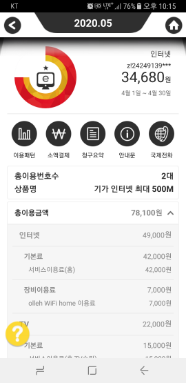 현재 쓰고 계신 인터넷 요금은 전혀 문제가 없습니다ㅎㅎ