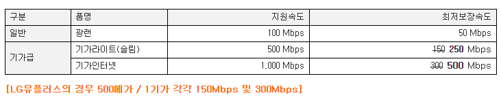 LG인터넷의 최저보장속도가 타사해 비해 떨어진다고 말씀해 주셨는데
