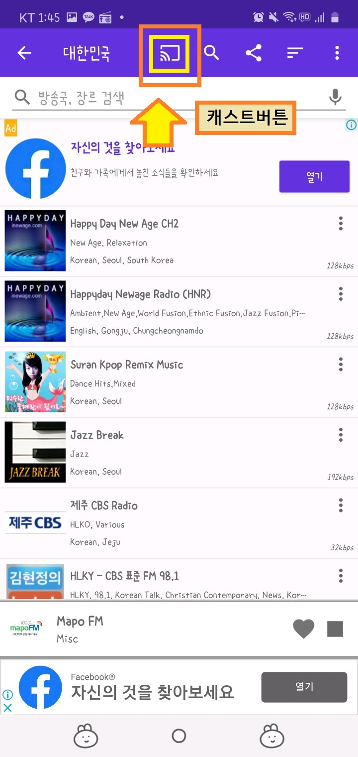 비슷한 이름을 가진 "라디오FM" 이라는 어플을 깔아서 테스트 해보니,