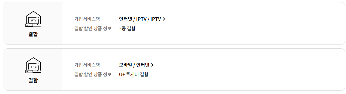 어떤 결합 상품이 적용되어 있는 지에 따라
