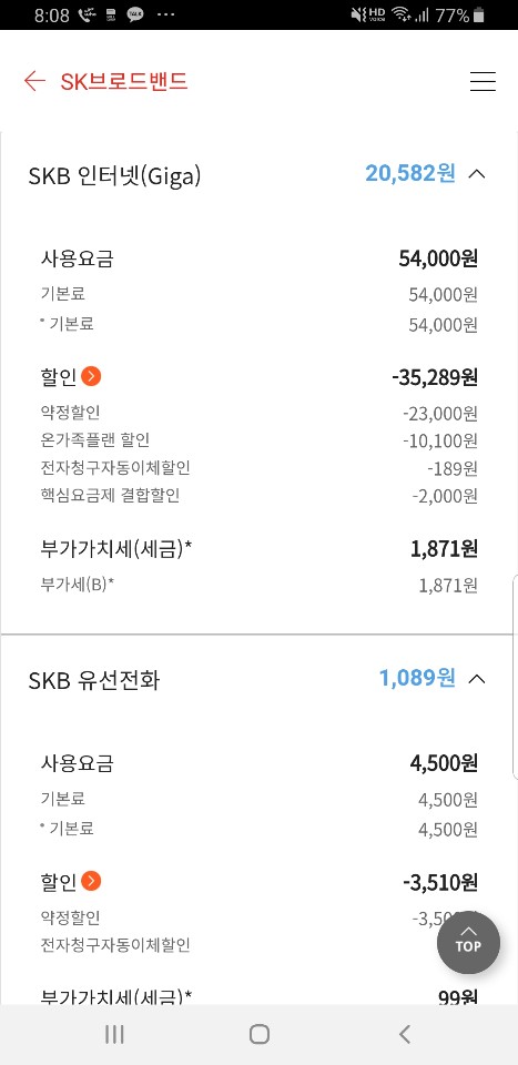 청구서 한켠을 보면 SK브로드밴드 혹은 SK텔레콤이 기재되어 있답니다^^