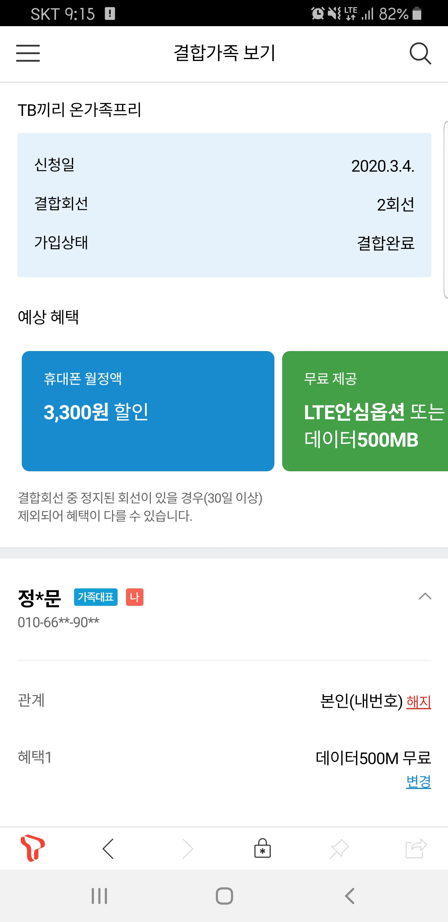 그럼 <온가족플랜> : SK폰 3회선 결합!! 이 되겠구요~~!!ㄷㄷㄷ