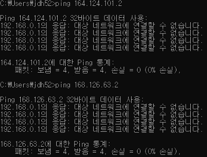인터넷 잘 될 때와 안 될 때 ipconfig를 해봤는데