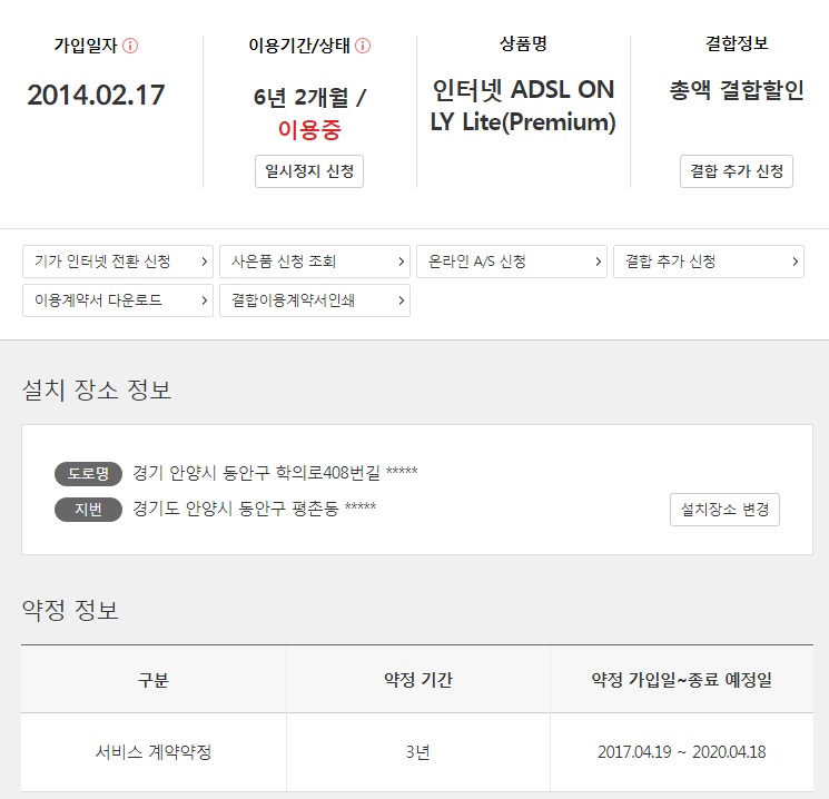 인터넷 요금할인은 이렇게 고정이 되어있지요!