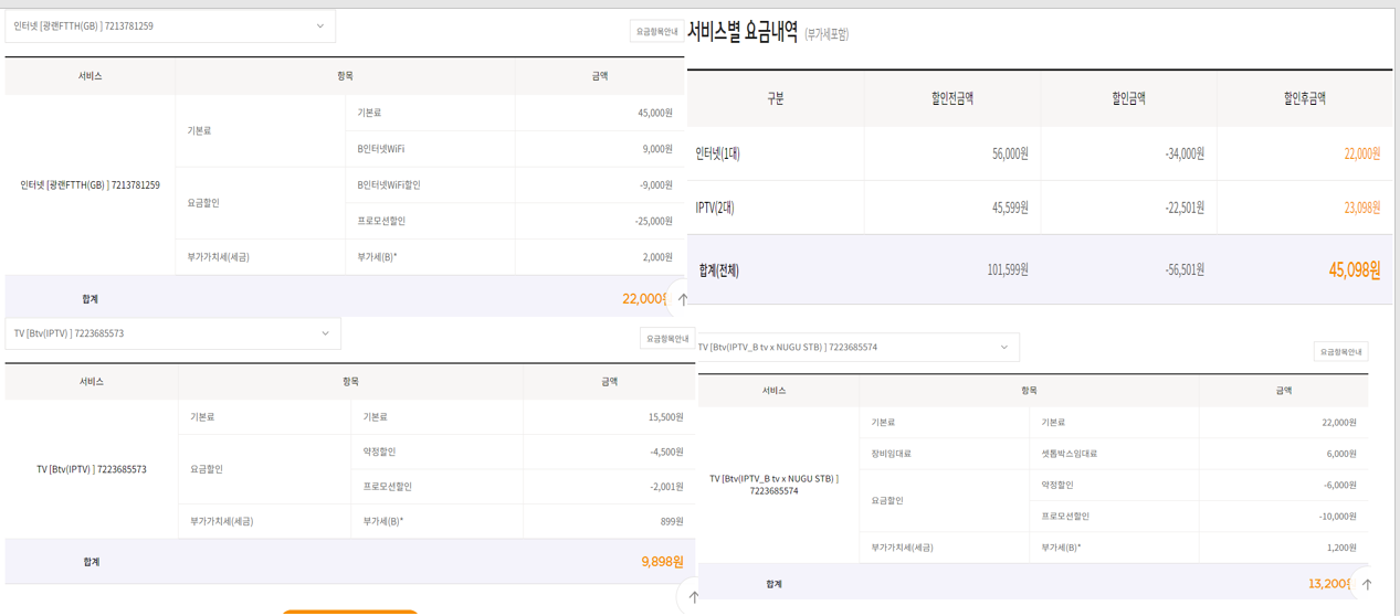 (인터넷 25,300원+TV 13,200원)이 합산 청구됩니다.