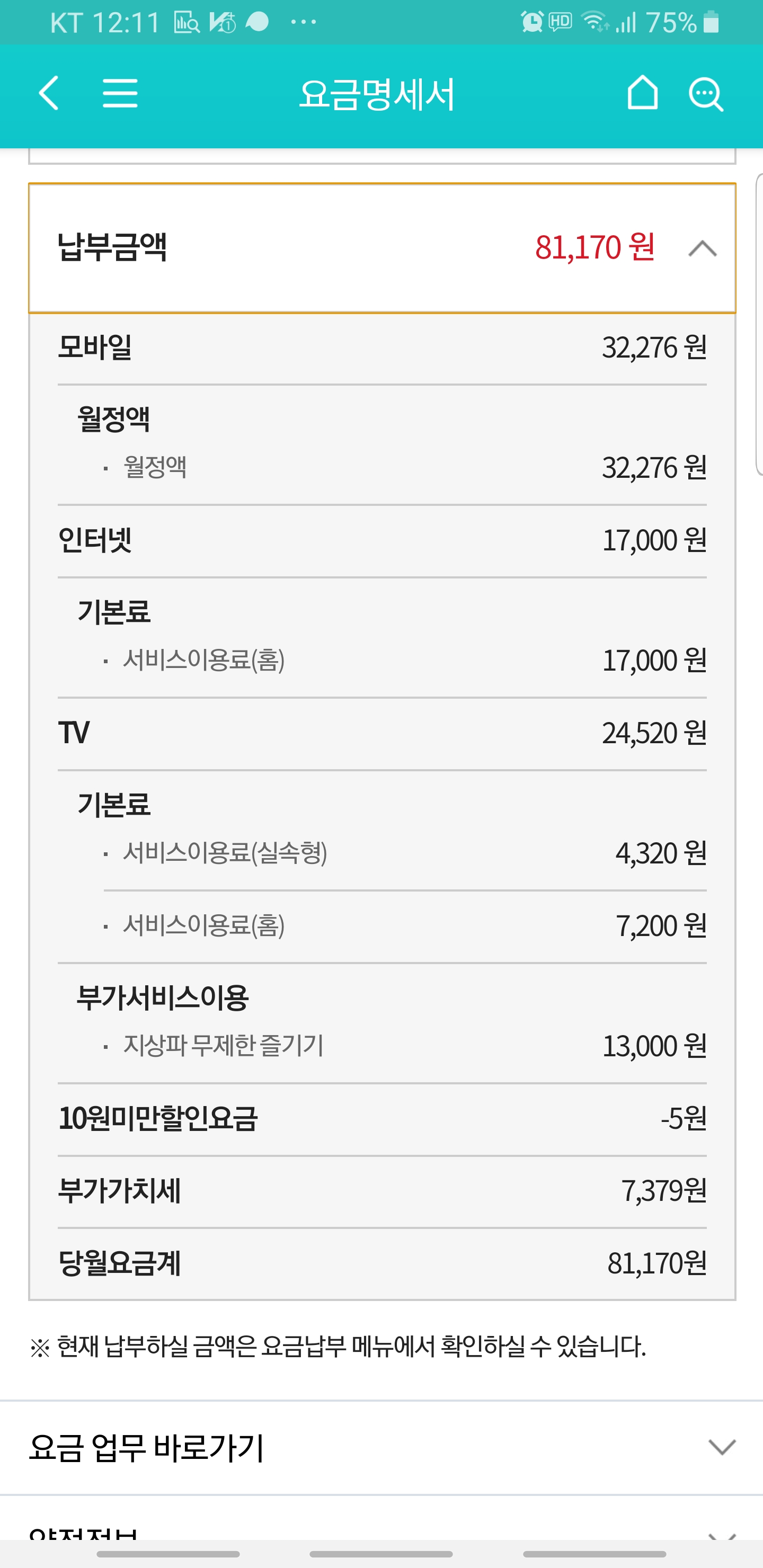 실질적으로 통장에서 빠져나가는 총 월요금은 "23,560원"이 됩니당