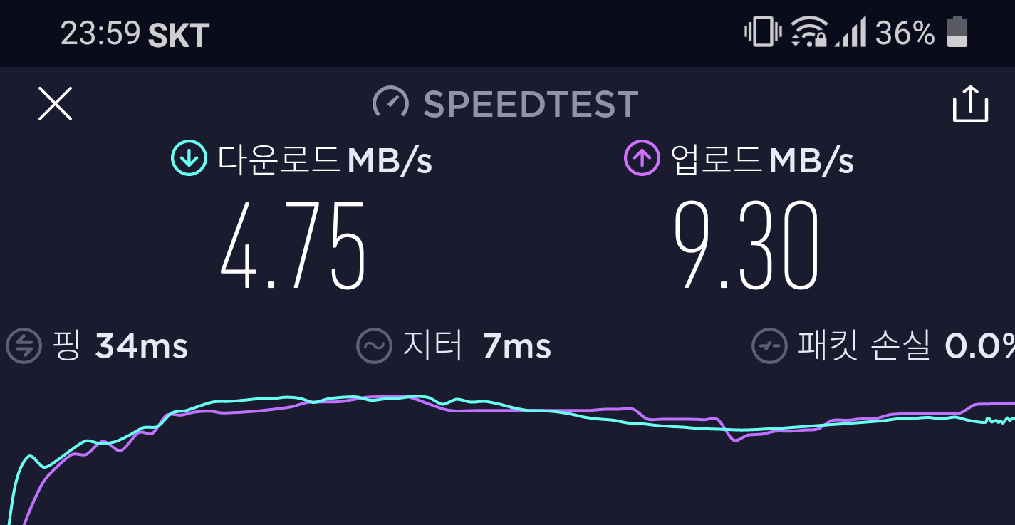 2. 속도를 재봤더니 저렇게 나오는데, 또 낮에는 정상적으로 잘 나온다.