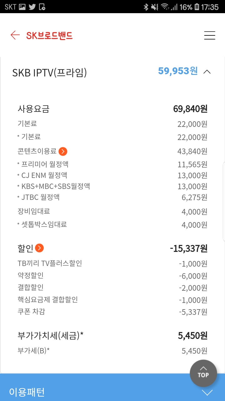 저희집 티비요금인데 저정도면 다시보기 가능한 앱 깔린 셋탑으로 업글하는게 더 아끼는거 같아서요... 부모님이 다시보기 포기를 못하시네요