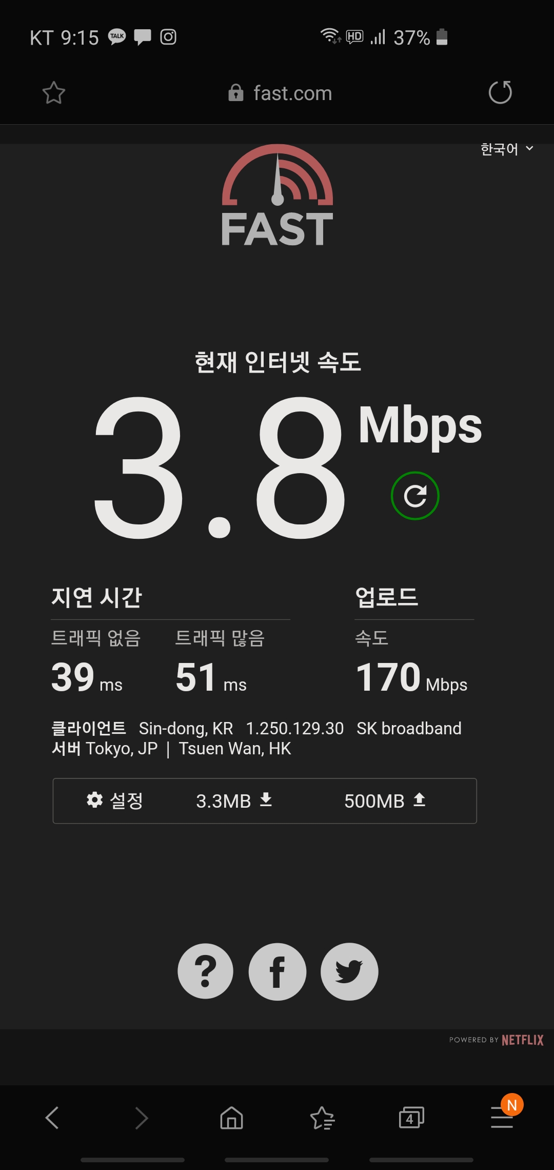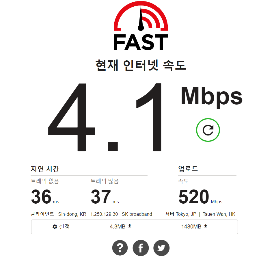 본가에 제공되는 SK인터넷 (국내 서버)의 품질/속도라 보기 어렵고,
