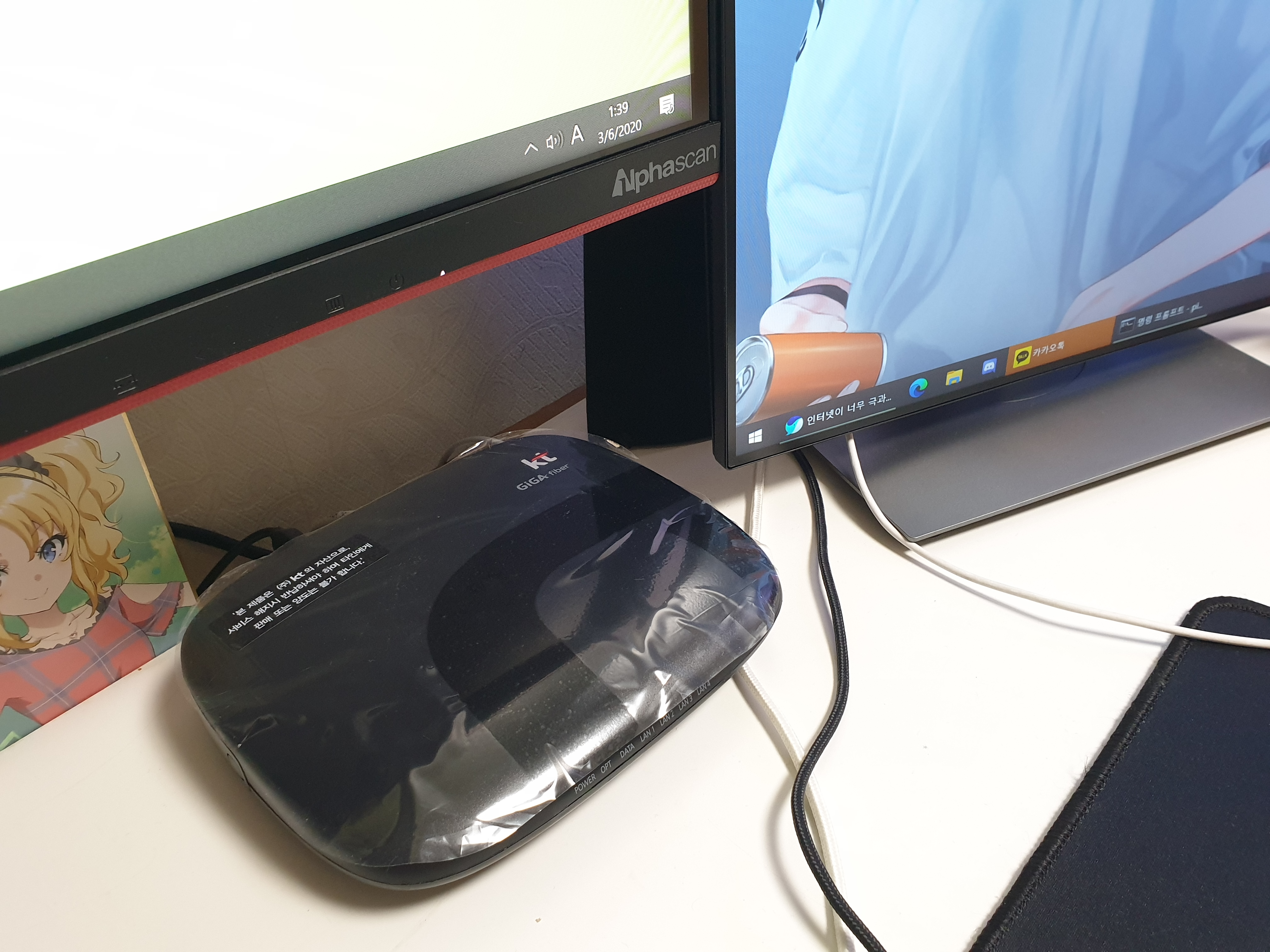 확인하고 집에 들어온 광섬유 보는데 아직도 적응이 안되네요 .