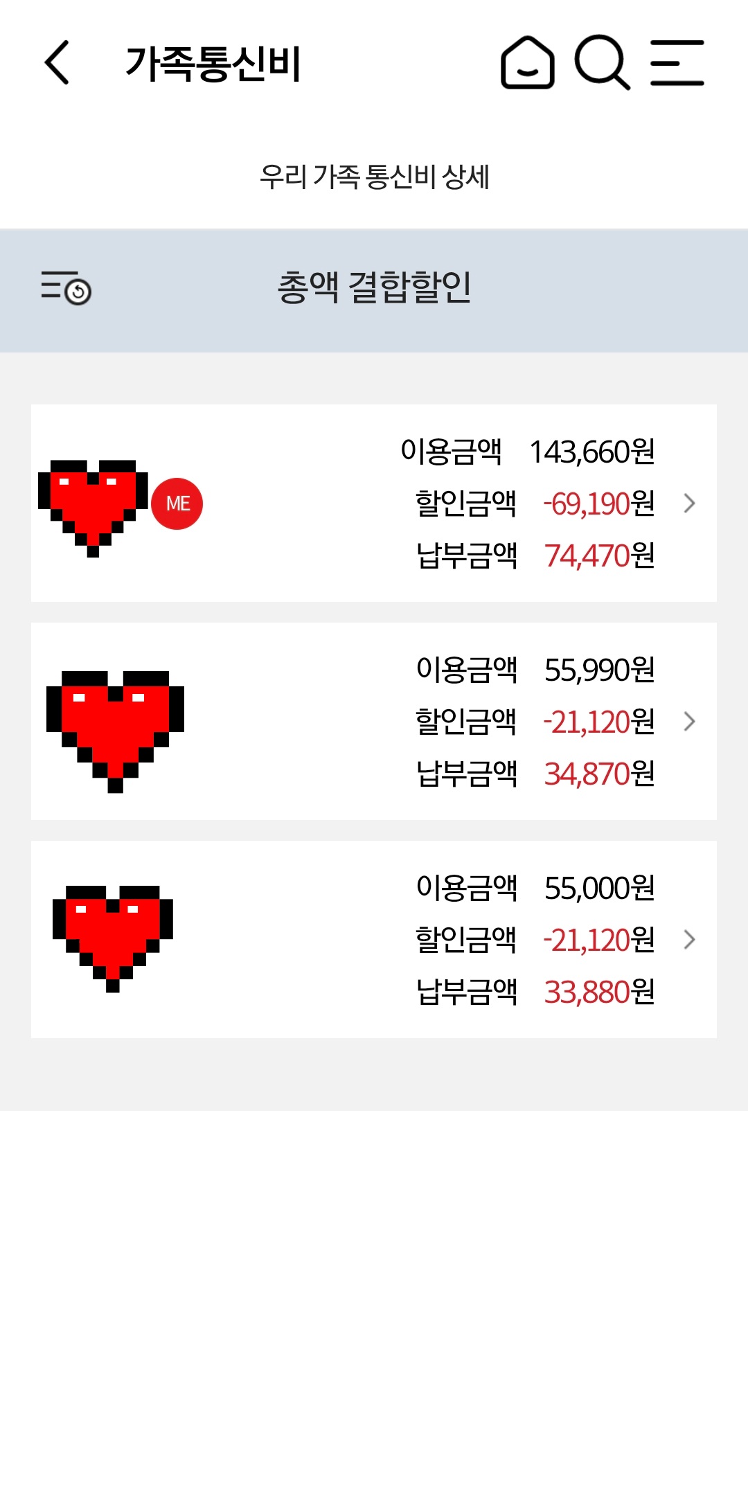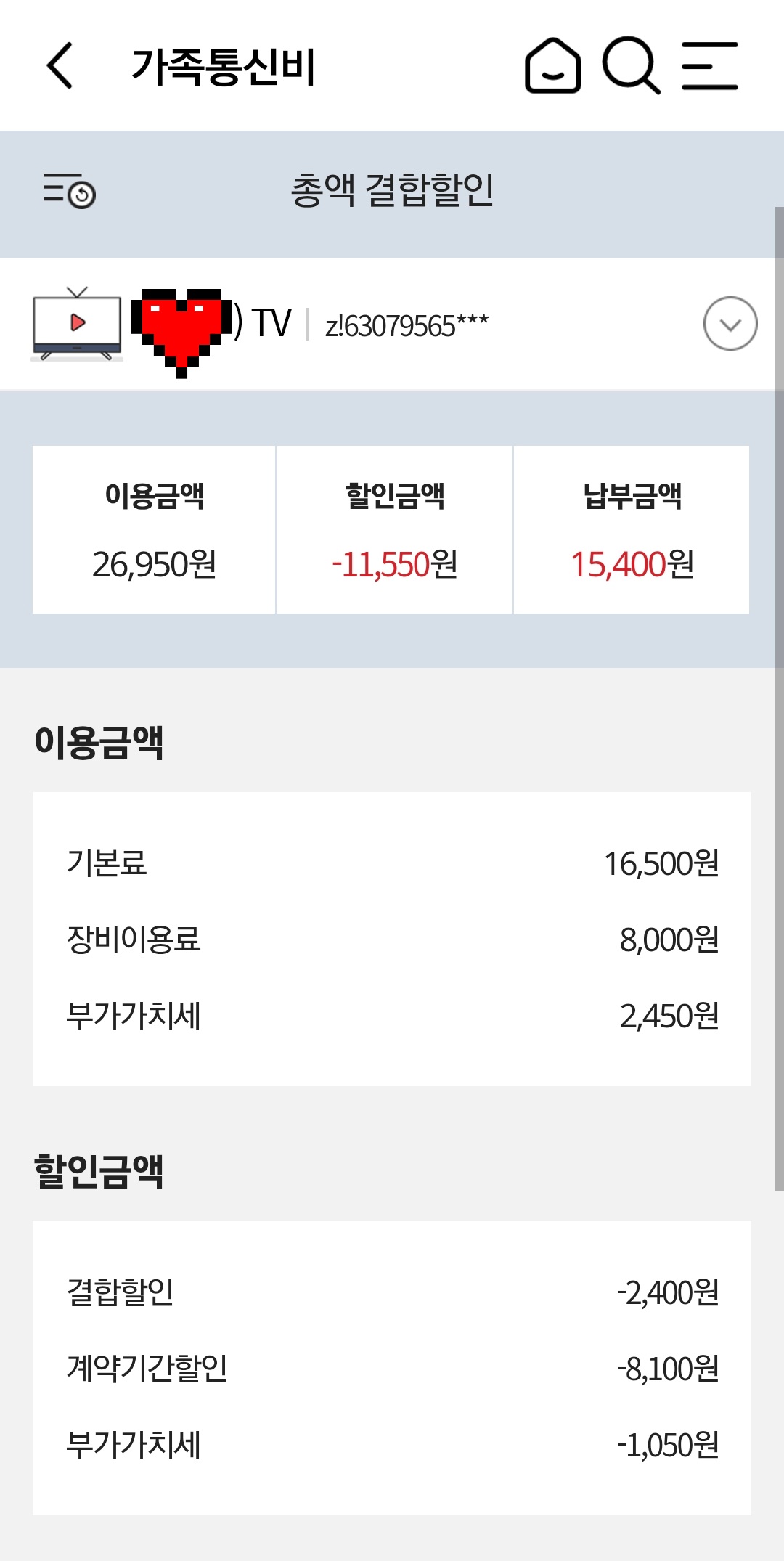 (우리집에 <패밀리>로 결합되어 할인받고 계심)