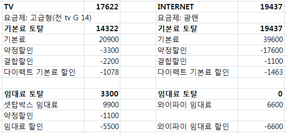 현재 사용 중인 요금제와 동급의 요금제(100메가)를 사용한다는 가정하에