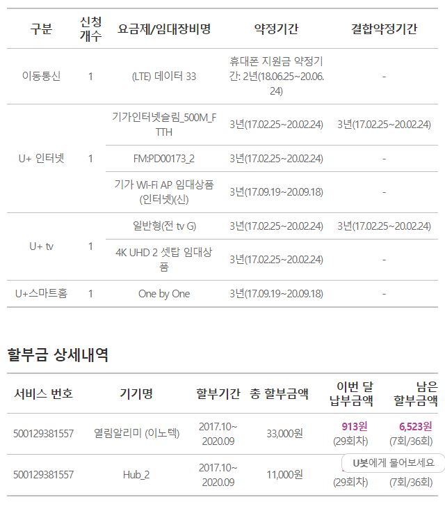 6. 중간에 이사를 하게 되면서 인터넷+TV는 약정기간이 끝난 상태 이며, Wi-Fi AP, 스마트 홈은 20년 9월 18일까지 입니다.