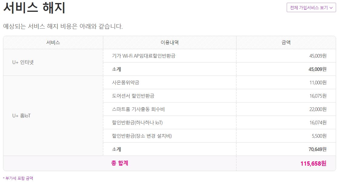 즉, IoT상품 해지 시 위약금이 얼마인지 확인해보시고