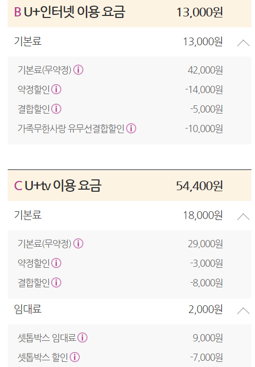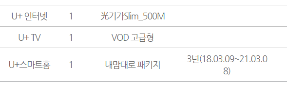 (인터넷은 500메가급, TV요금제는 가장 기본적으로 이용하는 상품 기준입니다^^)