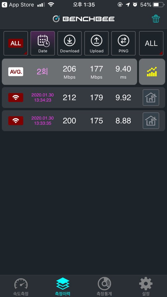 무선인터넷 속도가.. 평균 업/다운로드 200Mbps 언저리..라면~?