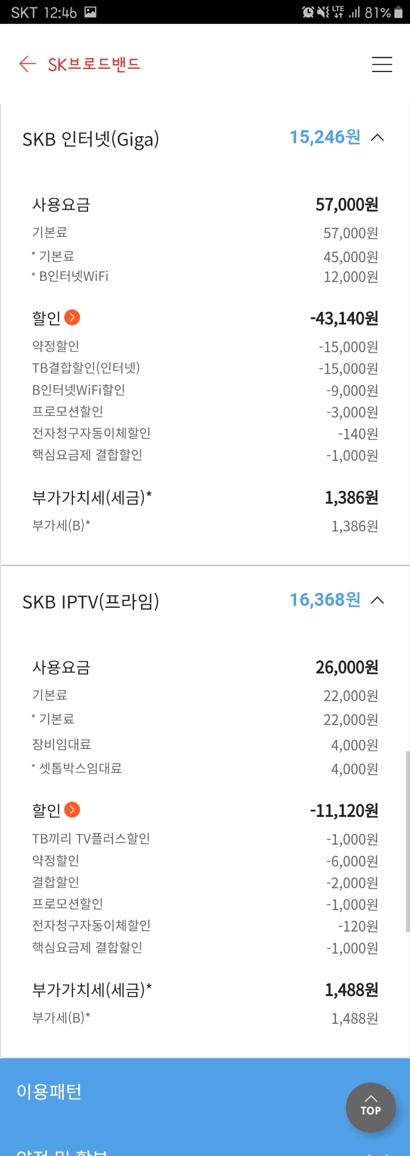"온가족할인(30년이상)" 결합을 이용중이시더라구요.