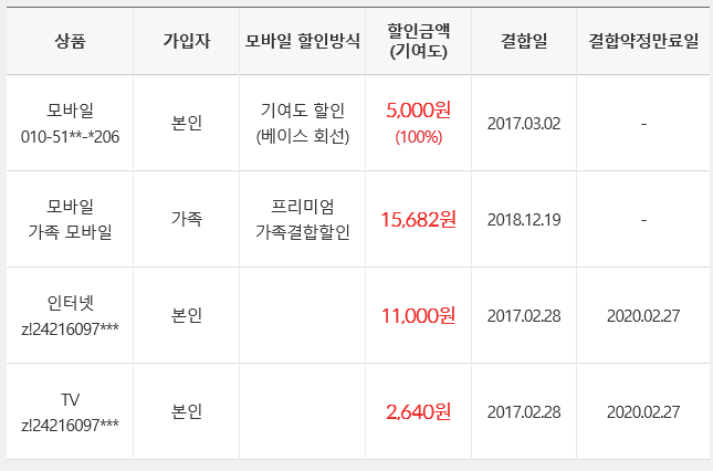500메가급 인터넷 기준 : 매월 총합 27,610원의 할인이 적용되므로!!