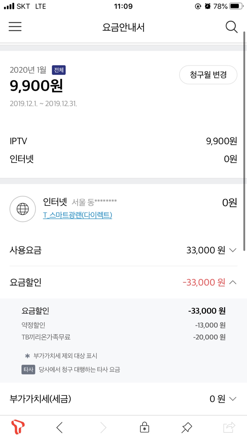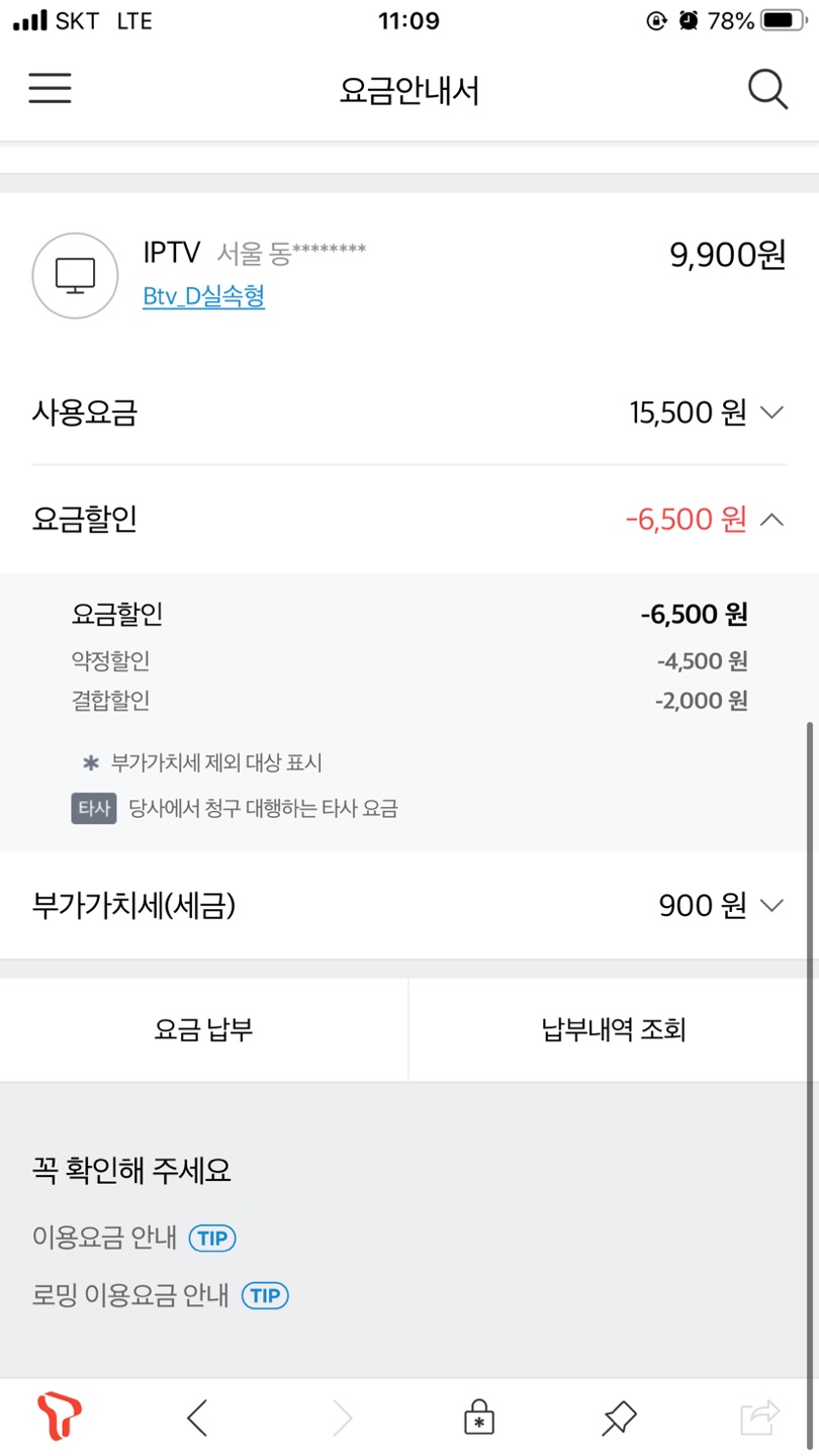 => 기존보다 월요금이 +5,500원 추가된 15,400원이 됩니다ㅎㅎ