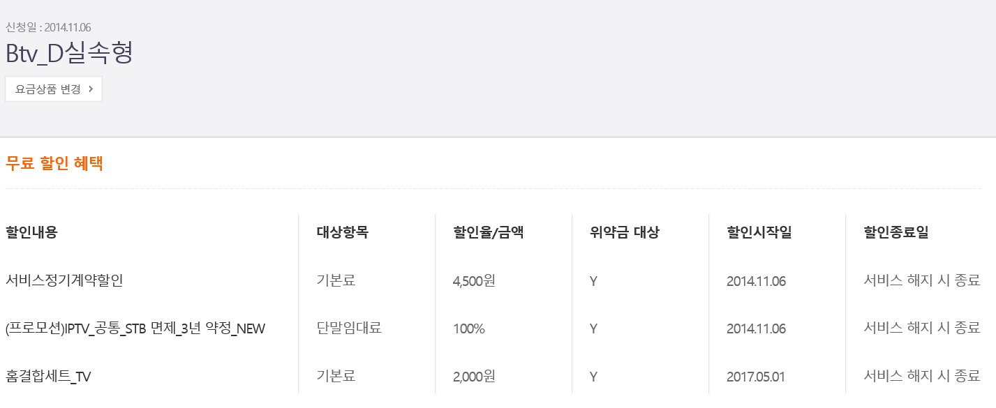 btv는 D실속형에서 베이직요금제로 변경하고 싶은데