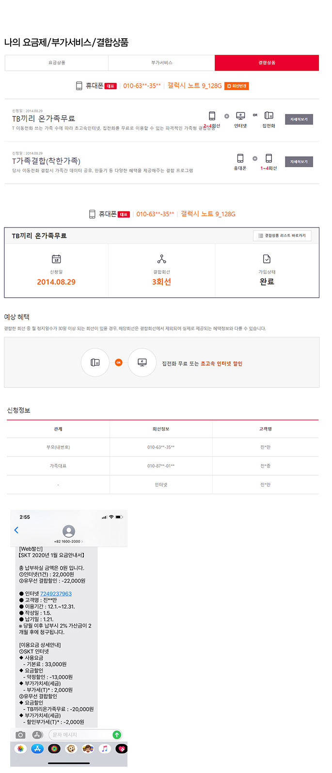 질문 2) 두 분의 SK휴대폰은 아버지댁에 결합되있으실 텐데