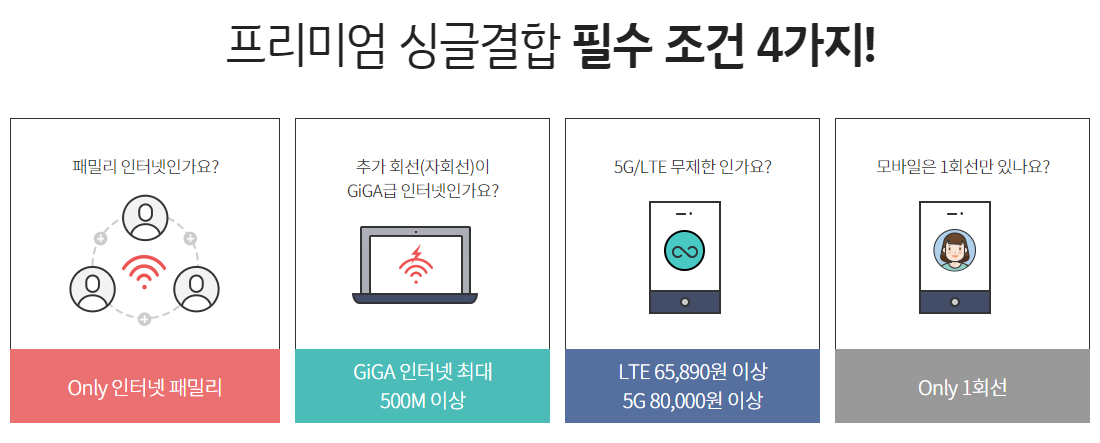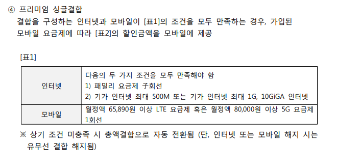 3) 결합하는 휴대폰 1회선이 고가요금제(월 65,890원/5G 80,000원 이상)일 것!