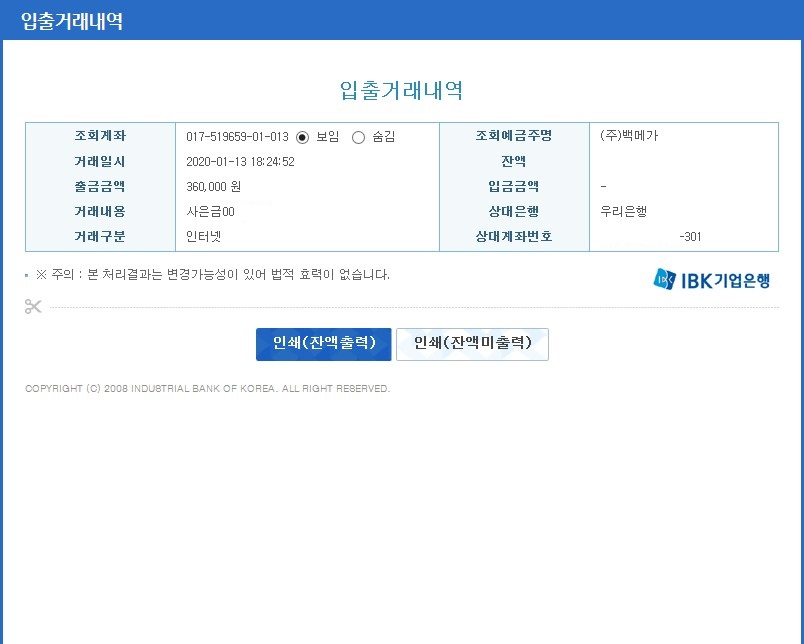 (입금증도 같이 첨부해놓았습니다^ㅇ^)