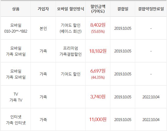 어떤 요금제를 쓰시는 지에 따라 할인액이 달라지는데 결합하실 때
