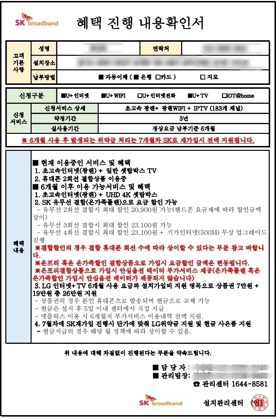 문자로 받아본 계약서도 순 엉터리고 알아보니 설치관리센터라는 곳은 아예 없더군요.