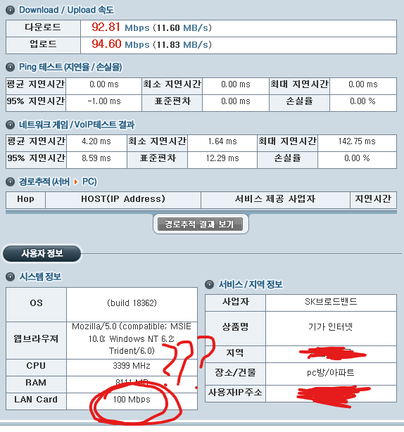"500메가인터넷을 사용중인데 한 컴퓨터에서만 정상속도가 나오고,