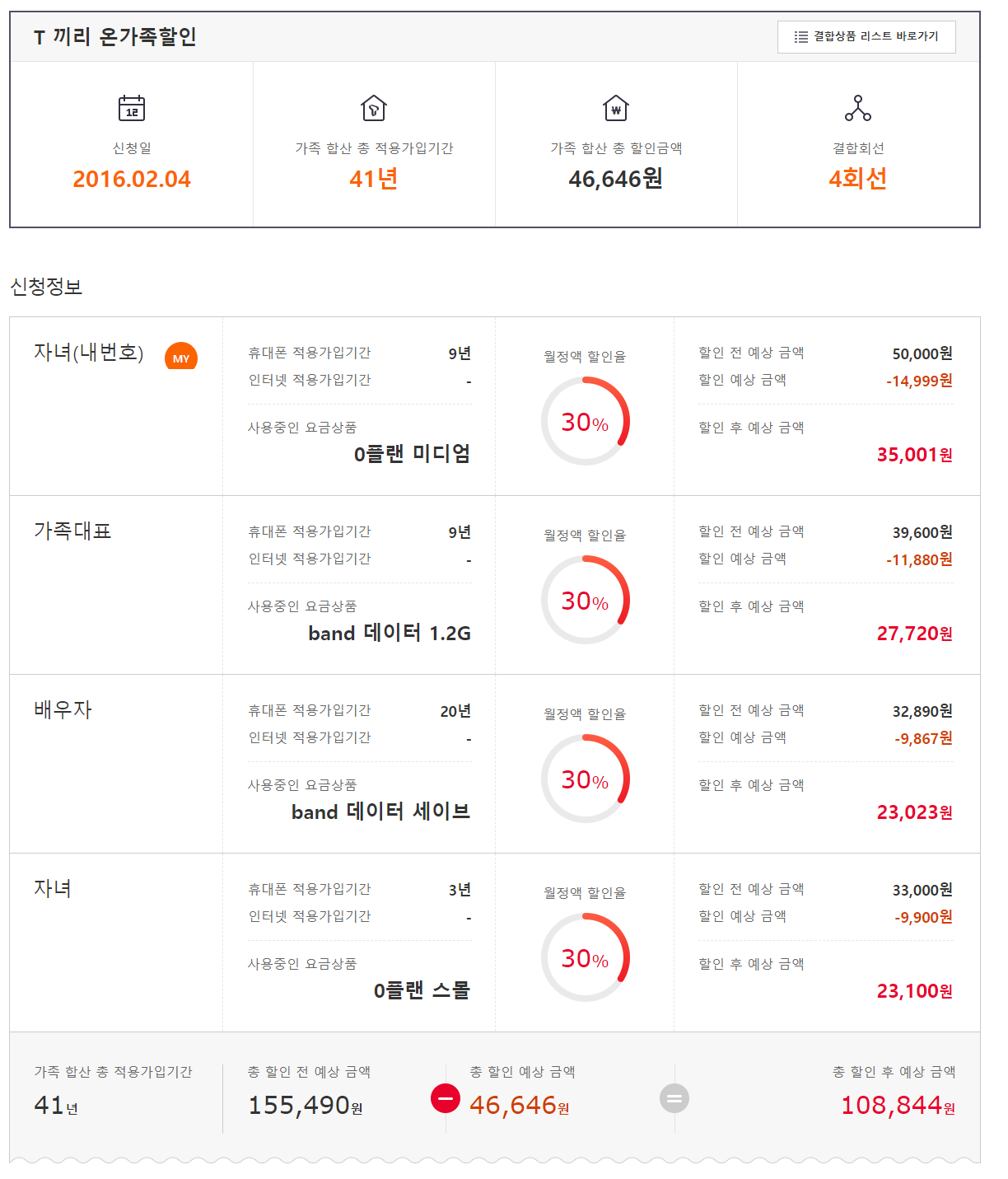앞서 말씀드린것처럼 저희 가족인 30년 이상/4회선 이용 중인데요.