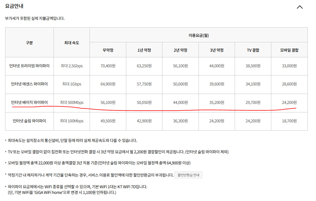 1. KT 500메가 인터넷 : 월요금의 경우~?!