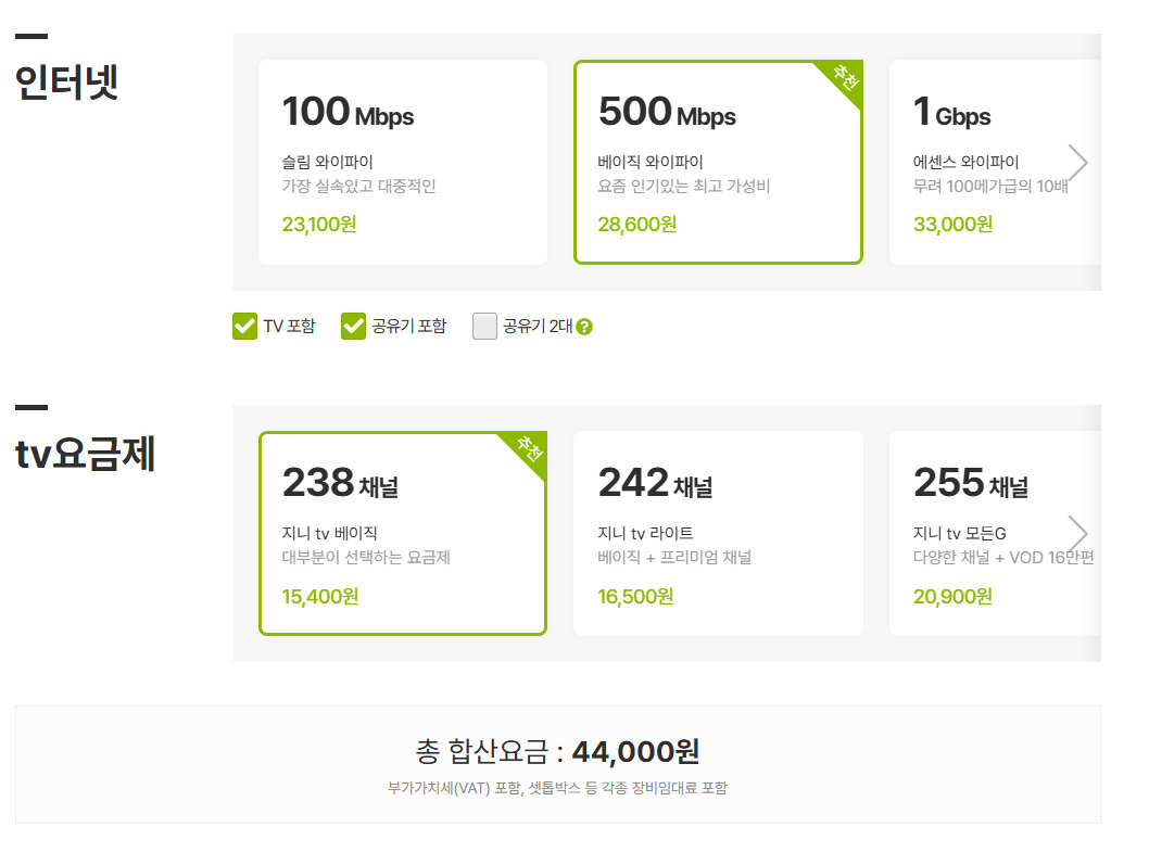 KT 인터넷을 설치하고 싶고, 인터넷 500Mbps+TV결합에 공유기까지 생각 중입니다.