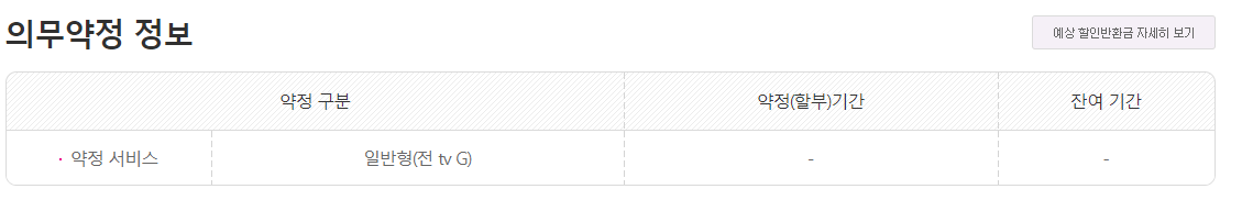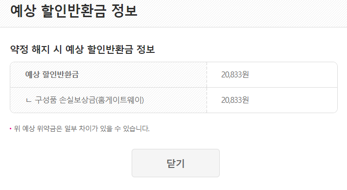 iptv의 약정은 만료되었고 해지시 예상 반환금은 '구성품 손실보상금(홈게이트웨이)' 라는 명목으로 20833원이 나옵니다.