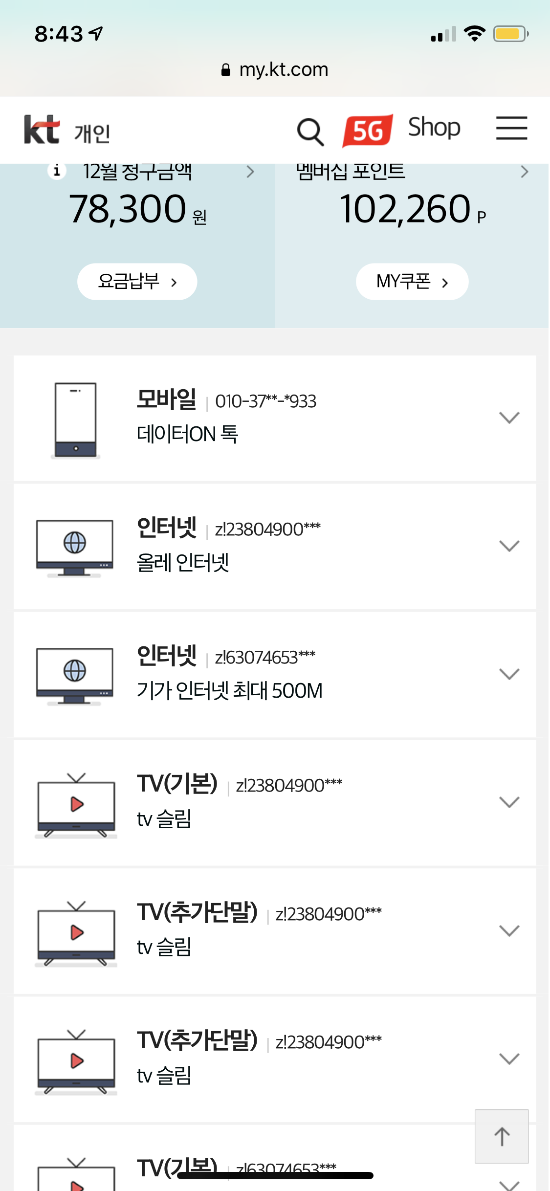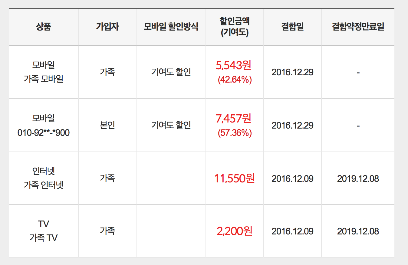 그리고 핸드폰 결합 혜택을 넉넉하게 받고 계실테니