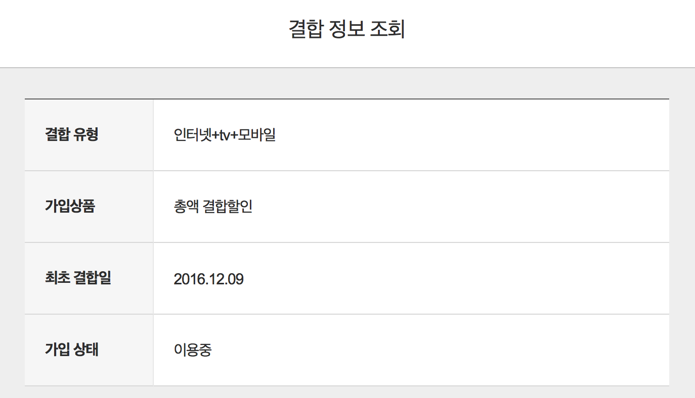 아래와 같이 결합중이고 할인을 받고 있습니다.