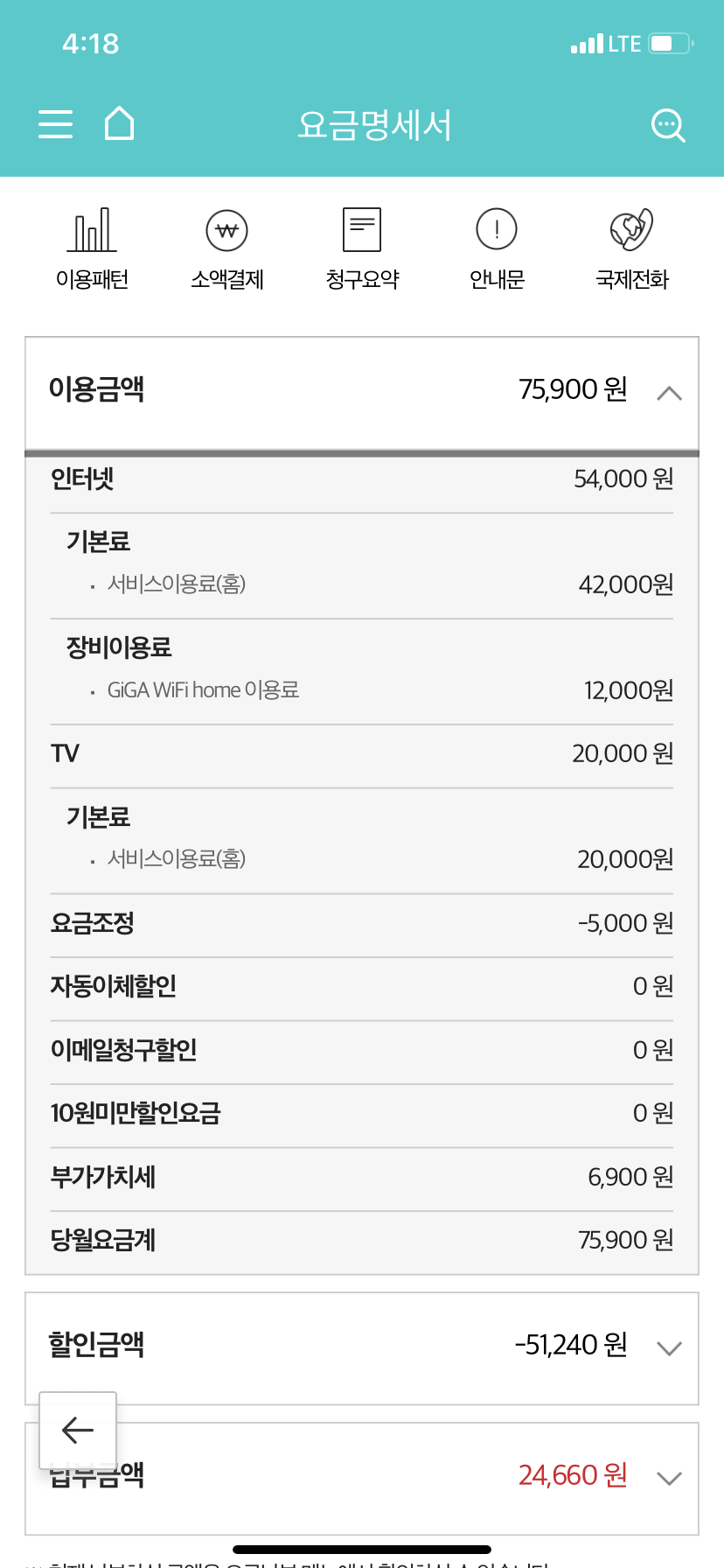 상품구성, 요금, 적용된 각종 혜택 등등...상황이 다 다르기에...
