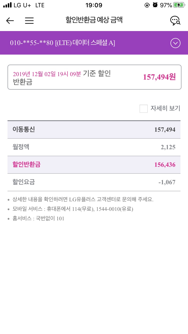 할인반환금 예상 금액 캡쳐한 것 올려요.
