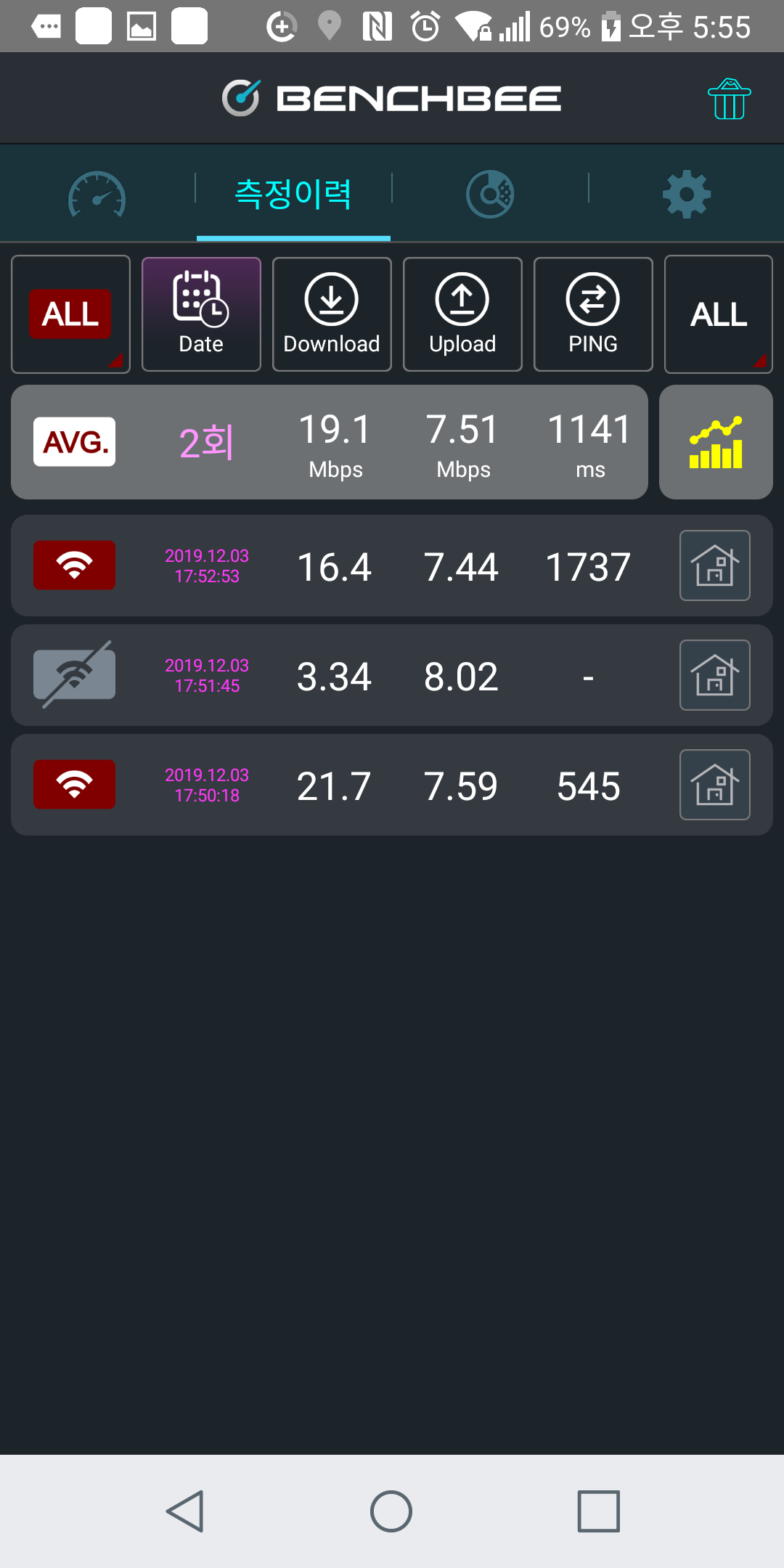 평균 다운로드 속도, 업로드 속도, 지연속도 등을 체크해주시겠어요~?