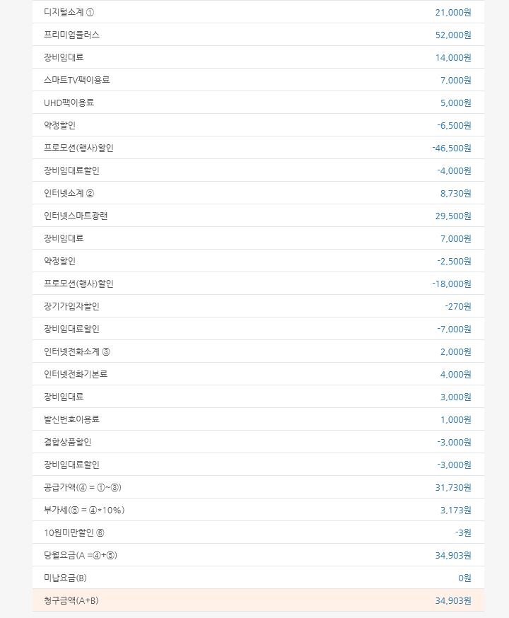 인터넷 요금에서만 3,300원이 매월 할인되구요~~!!