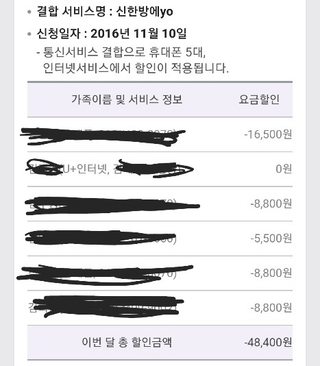이와 별개로 휴대폰 요금에서 총 -16,610원 할인이 주어져