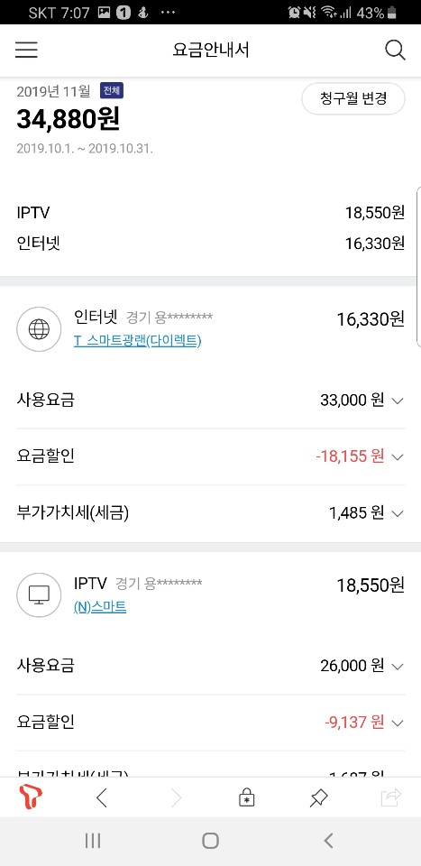 휴대폰 결합으로 짱짱한 할인을 받고 계시니 SK와 인연을 이어가시는 게 유리해요~!