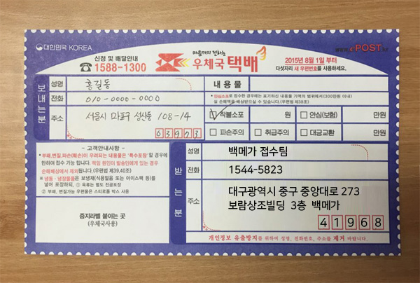 2) 아래 주소지에 택배(착불)로 보내주세요~!