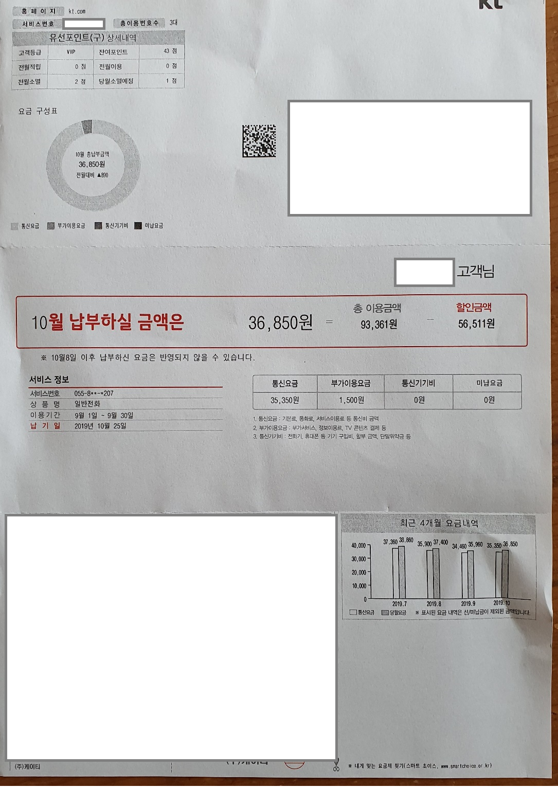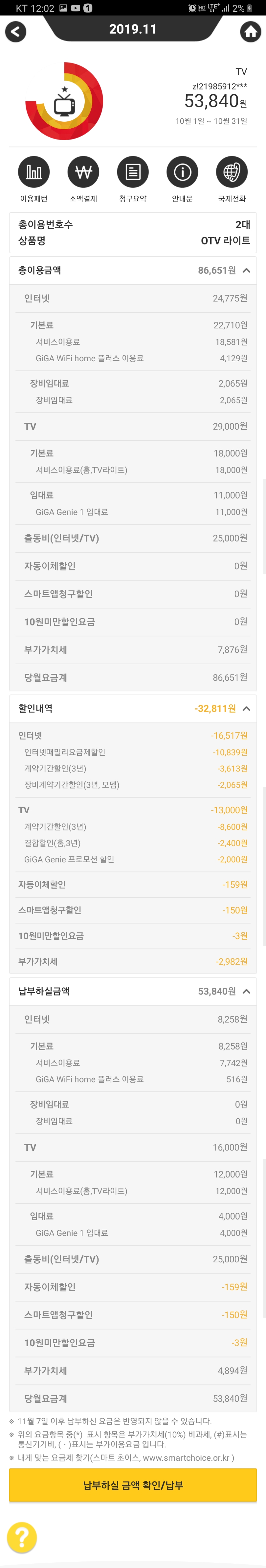 KT로부터 받을 수 있는 결합할인은 전부 잘 챙겨받고 계셨었습니다 :-) 참으로 다행이에요 ㅎㅎ