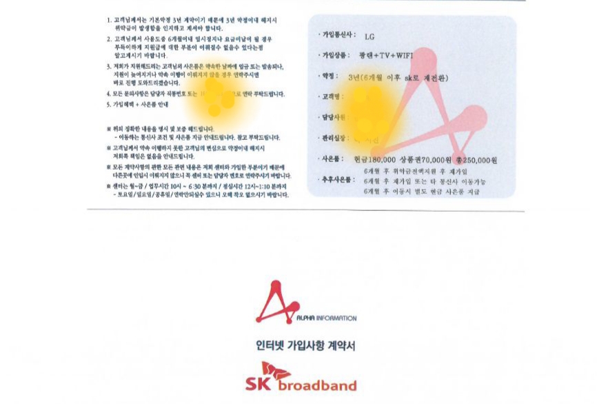 에고 3년전 인터넷가입했던 그 대리점이라고 하면서 연락이와서 그때 직접 이마트에서 가입했을때 잘해주셔서 그런가보다 생각하고 진행한 것이 호구였네요ㅠ  요금도 sk 해지 후 lg로 넘어갈 때까지 sk요금청구서 주면 지원해준다더니 연락도없고..