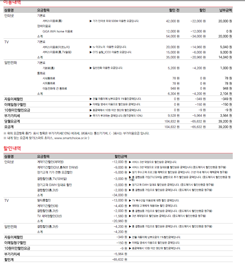 셋탑박스 요금이 3,300원 할인되거든요ㅎㅎ