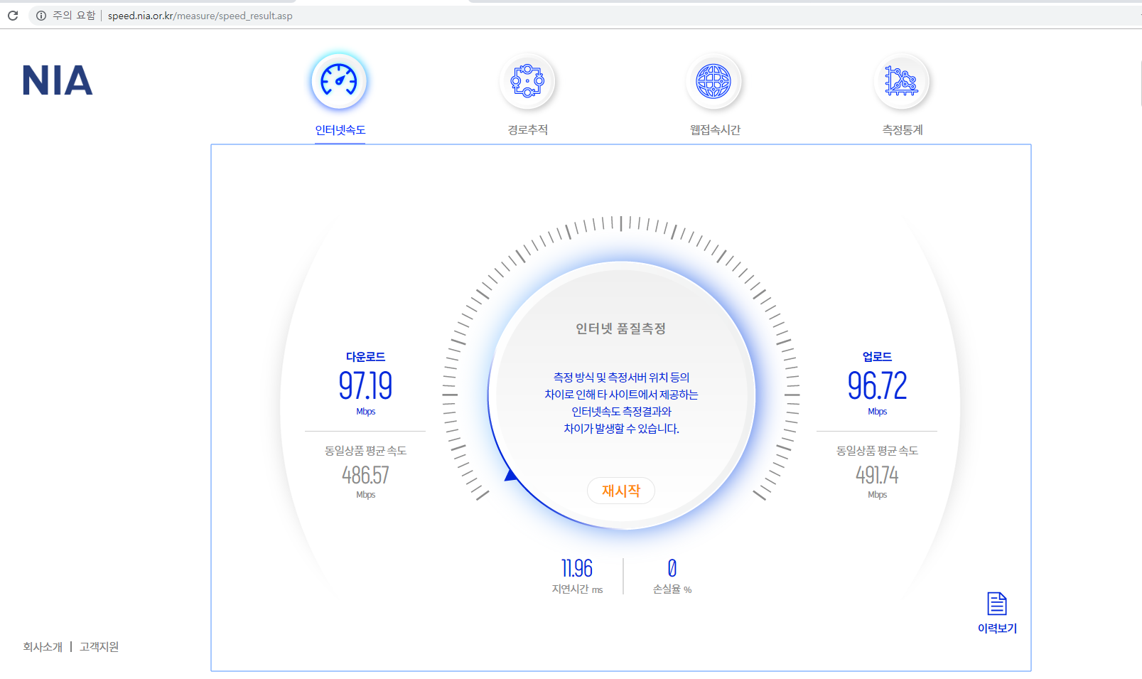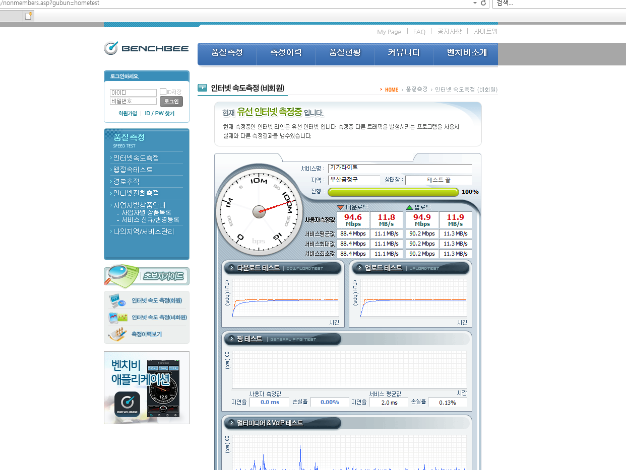 다운로드 업로드 속도는 90Mbps 대로 거의 비슷한 것으로 보아