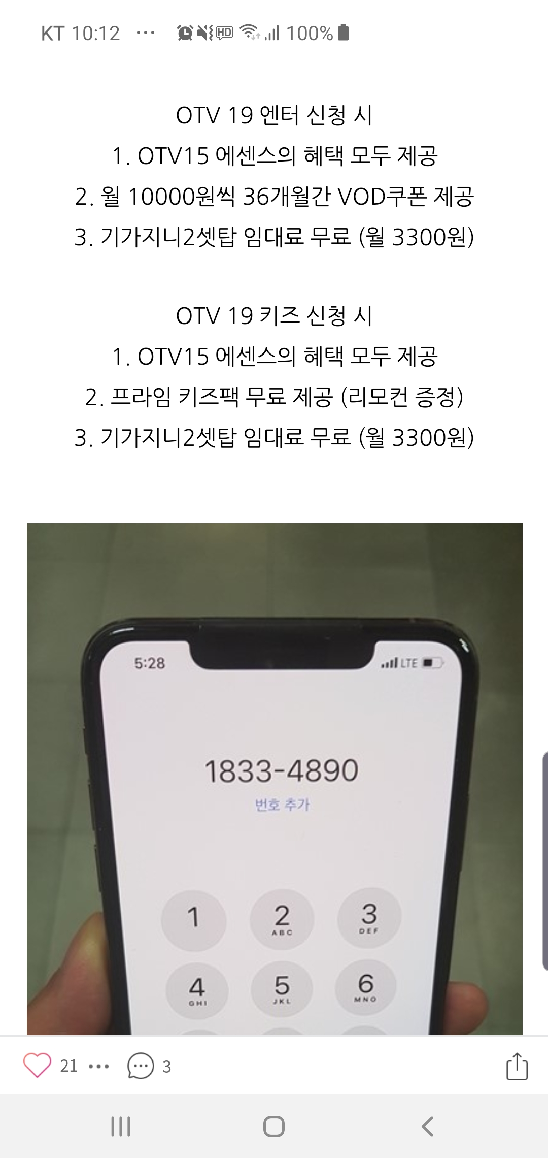 TV요금제 업그레이드 시 셋탑박스 임대료가 무료화되는지 꼭꼭 확답받아주세요~!